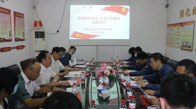 参观学习完毕后,双方党员前往粤安驾校大学城总部会议室,由市维驾处长、党支部书记林绍辉同志主持开展以“参观革命旧址、传承红色基因”为主题的党史学习教育学习研讨交流会。