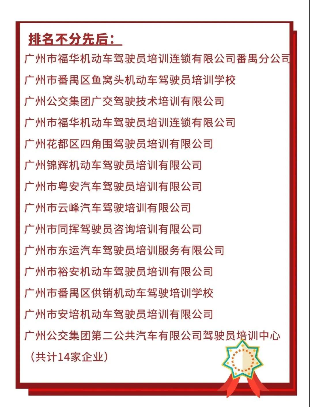根据广东省运输厅工作要求,市交通运输部门于2020年开展组织2019年度广州市驾培机构诚信评选工作。发动11个区级交通运输部门分别对辖区驾培机构进行经营管理、安全生产、服务质量以及社会责任方面共36项指标考核,最终以企业自评、现场检查及公示复评选出2019年度AAAA级驾培机构共14家,公示结果可登陆“广州市交通运输局”查询“2019年度诚信评价”。