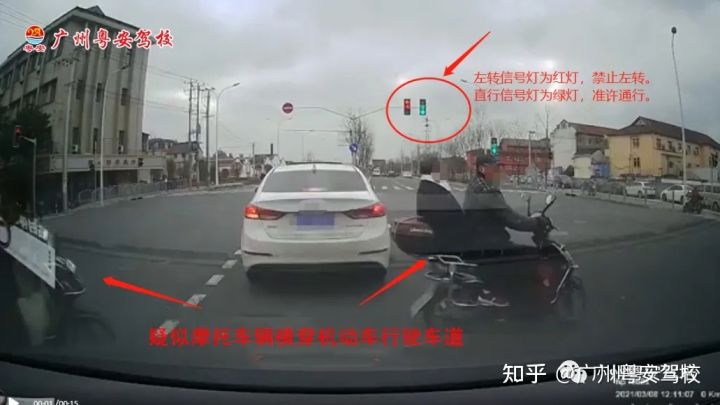 而摩托车辆疑似横穿机动车行驶车道
